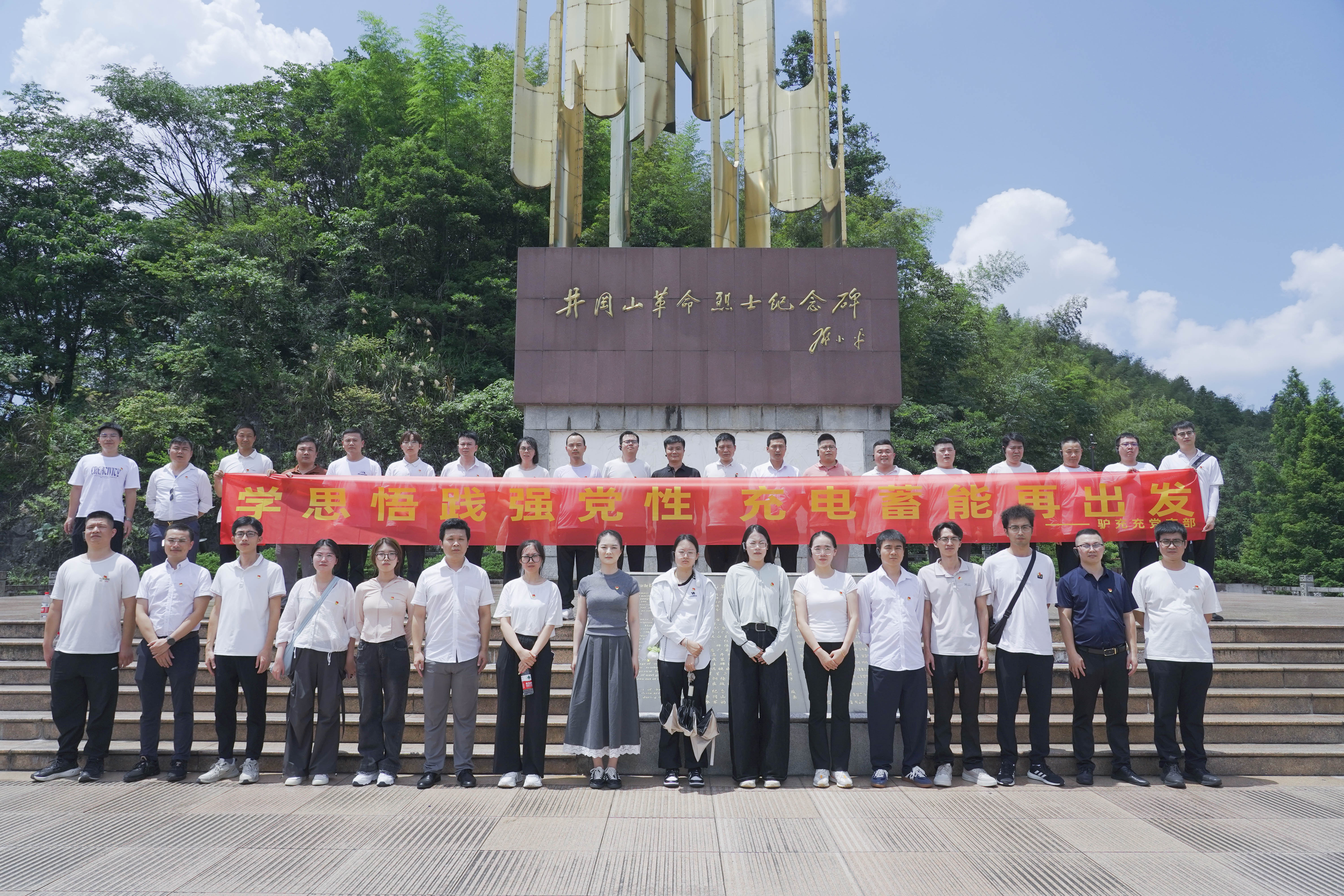 为深入学习贯彻习近平新时代中国特色社会主义思想,庆祝中国共产党成立104周年,进一步深化中央八项规定精神学习教育,激励全体党员干部继承和发扬党的光荣传统,7月5日,江西驴充充物联网科技有限公司党支部组织全体党员干部、预备党员、入党积极分子到井冈山开展“学思悟践强党性 充电蓄能再出发”七一主题党日活动。