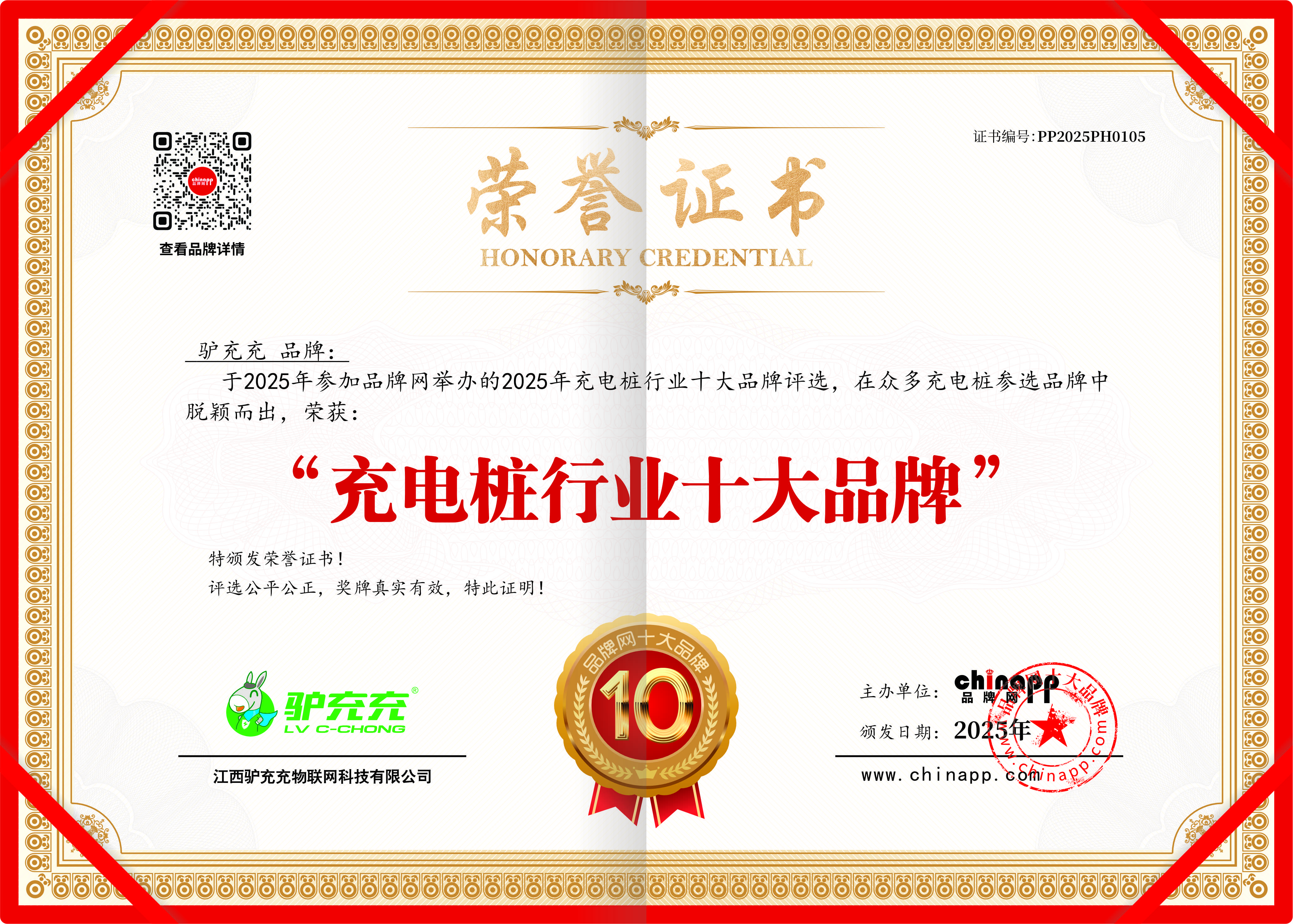 2025年充电桩行业十大品牌证书